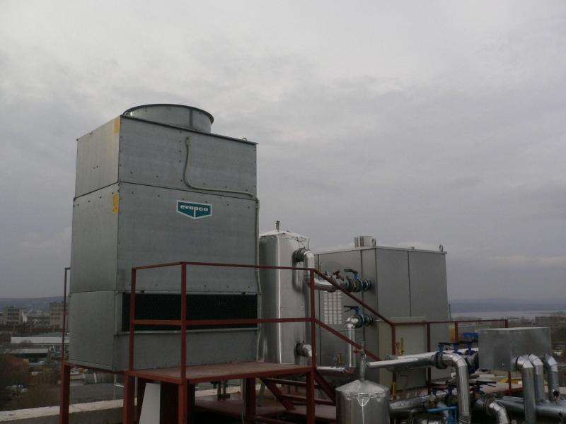 Административна сграда собственост на "Аутогуми" ООД. Монтаж на газова абсорбсионна термопомпа, отоплителна/охладителна инсталация с топлоносител етилен гликол и вентилаторни конвектори.